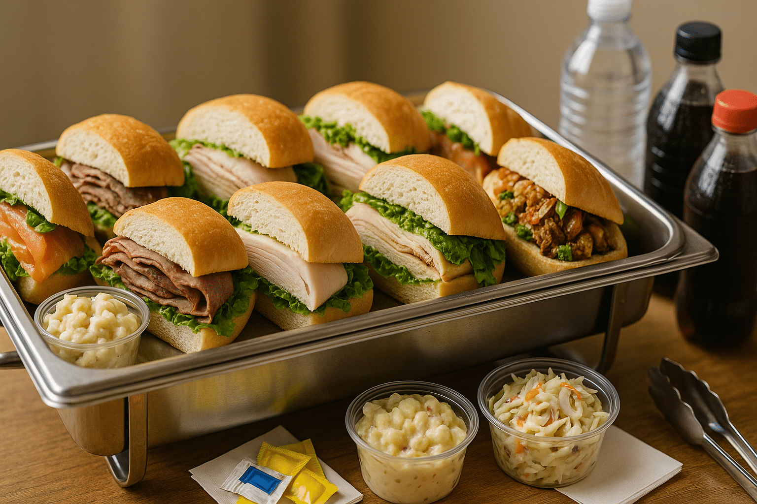 Choice of up to three sandwich types. Served with mayo & mustard packets, side and drinks.