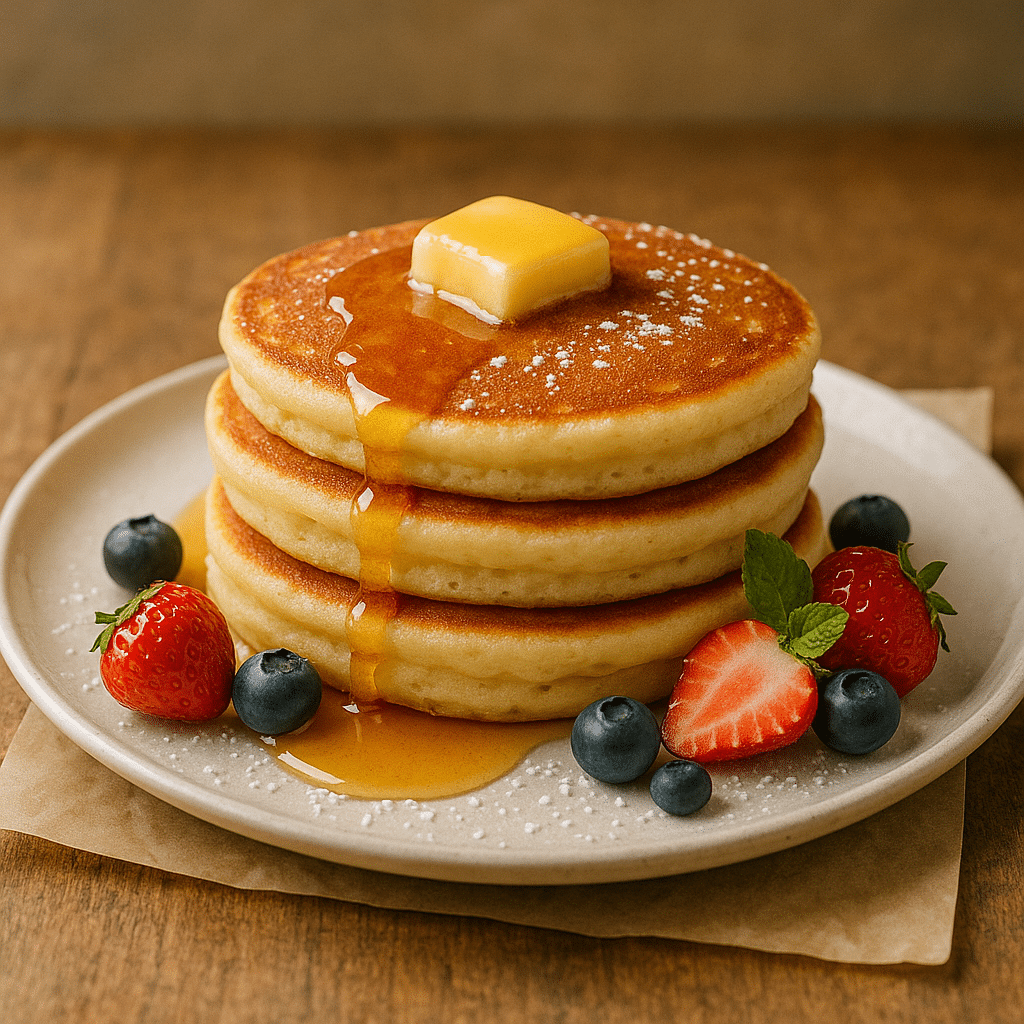 2 pancakes per person. Served with syrup and butter.